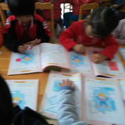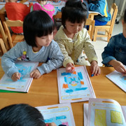 数学课,小朋友很认真的做练习