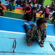 小朋友都跟着教练打武术