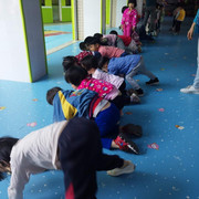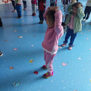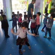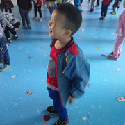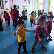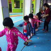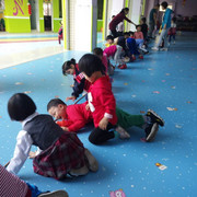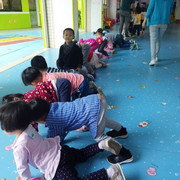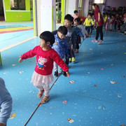 小朋友很开心的玩游戏,踩线游