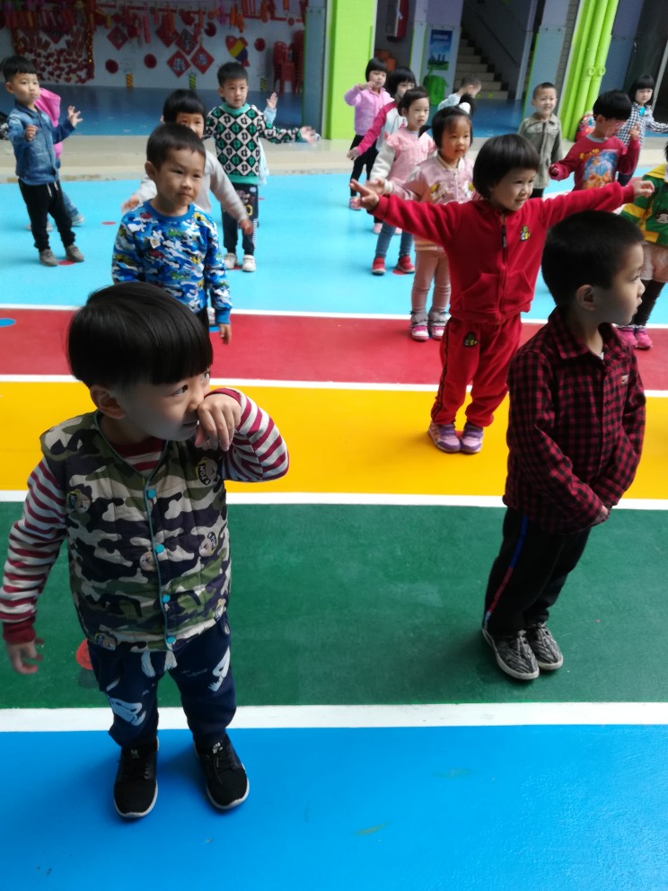 小朋友都很认真的玩游戏,学着