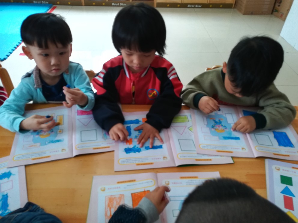 相片描述:数学课,小朋友很认真的做练习