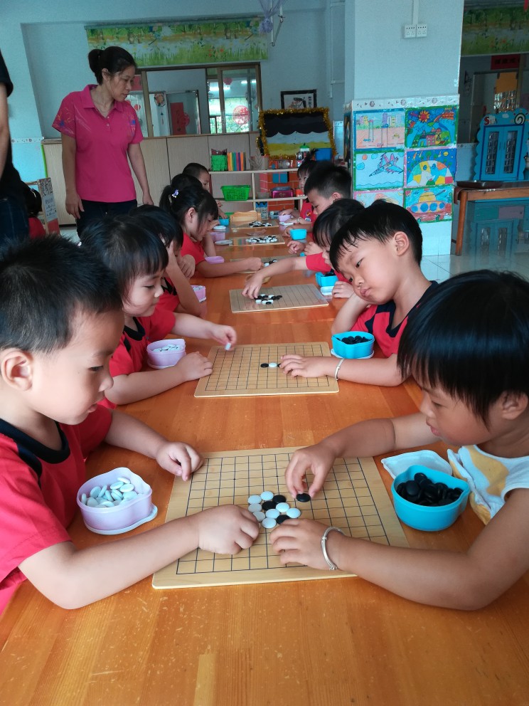 小朋友上围棋课很认真,大家一