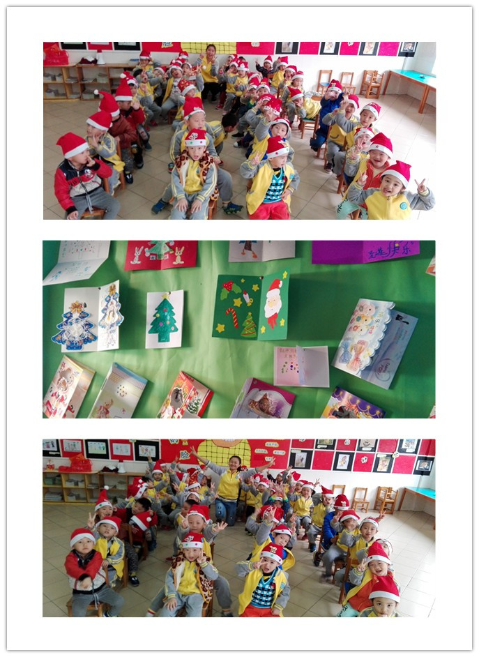 听着欢快的“叮叮当”乐声,仿佛听到鹿铃的声音,想象着童话般的世界里,洁白的雪地上,可爱麋鹿拉着雪橇载着慈祥的圣诞老人缓缓地驶来!为了让孩子们了解外国的节日习俗,感受圣诞节的节日氛围,体验圣诞节的快乐,我园开展了圣诞游园活动。为了营造节日氛围,心灵手巧的家长们带来了不同的圣诞装饰物,有自制的卡片、圣诞帽、礼物盒、雪花片,还有闪闪发光的圣诞树哦!