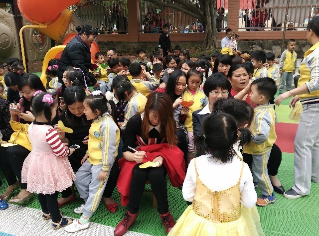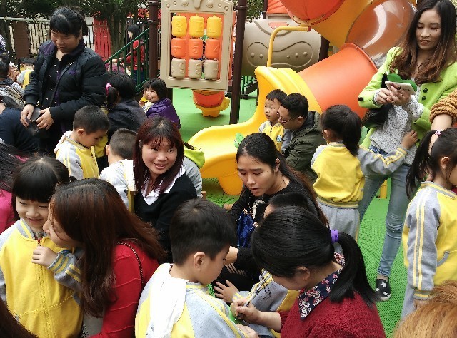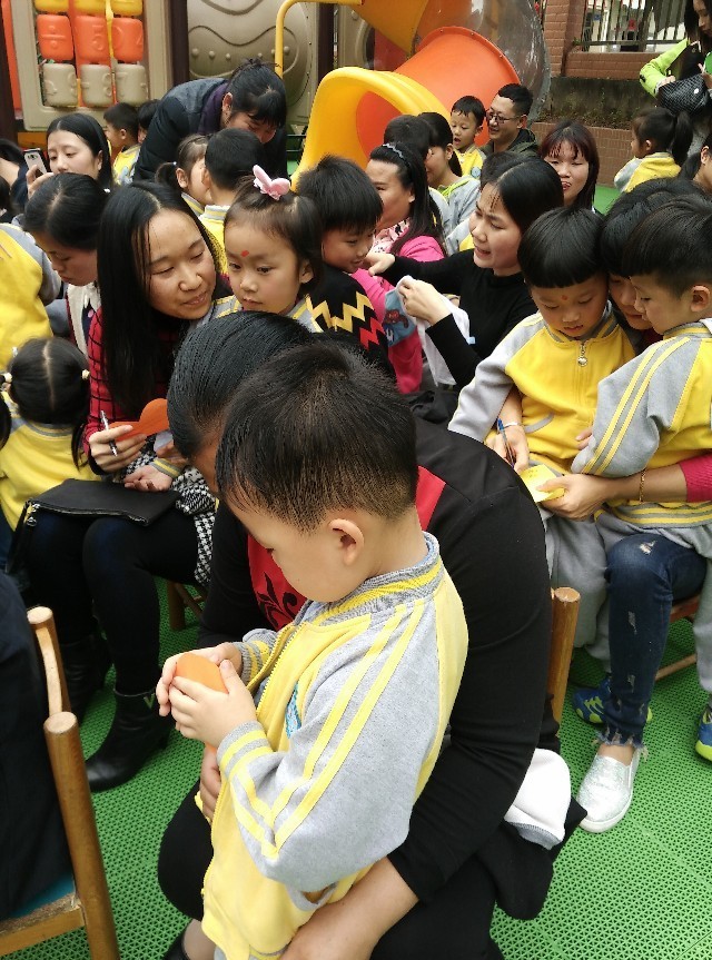 看孩子们今天是多么的开心,老师用毛笔粘上朱砂在孩子的额头正中点上红痣,在古代点朱砂又称“开天眼”看着这群宝贝都翘首以盼,都希望自己变得更加聪明呢!