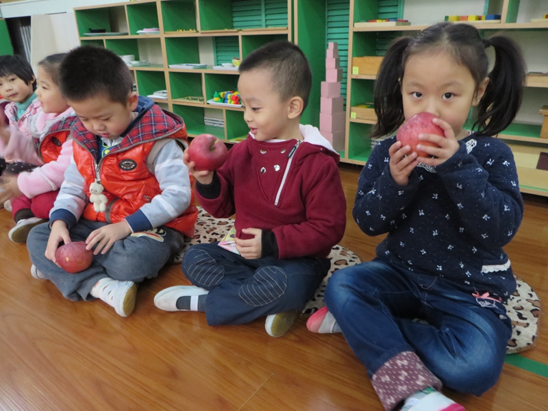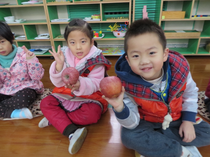 因为中国传统的节日冬至和元旦紧邻圣诞,因此在中国的圣诞节充满了“中国味”。 所谓的“平安果”其实就是苹果。由于汉语中“苹”字与“平”字谐音,充满创意的人们开始把苹果称作“平安果”。在这一天苹果从传统的食物摇身一变成了礼品和祝福的象征,而“平安夜”吃“平安果”,为来年许愿的庆祝方式也在人们中流行起来。平安果是祝福平安幸福一生的美好愿望。 在圣诞平安夜这一天,幼儿园送给每一个小朋友一个大大红红的平安果,外教老师Mark也带了礼物送给孩子们,孩子们拿到后都特别兴奋。祝愿所有的幼儿在新的一年里健康成长,快快乐乐,平平安安!
