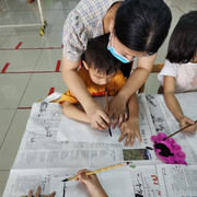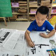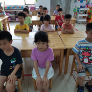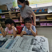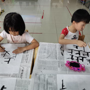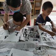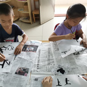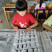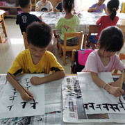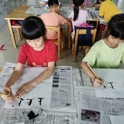 孩子们学习书法,坐姿端正,认