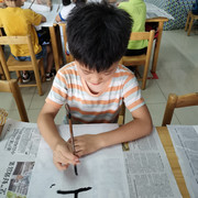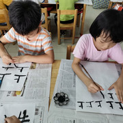 孩子们学习书法,坐姿端正,认
