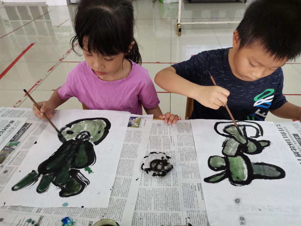 学习国画仙人掌,孩子们很认真