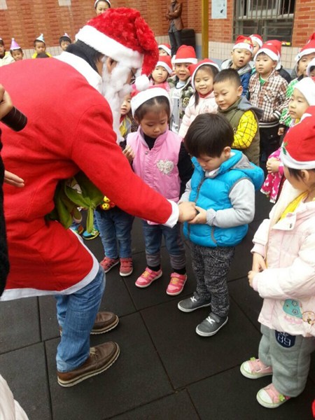 圣诞老人来给我们送礼物了,很开心哦!