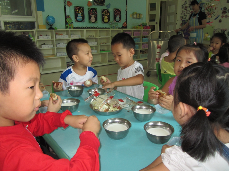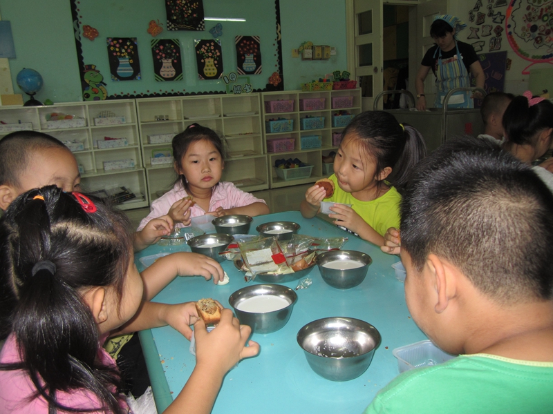 “八月十五月儿明呀 ,爷爷为我打月饼呀 ,月饼圆圆甜又香呀 ,一片月饼一片情哪 爷爷是个老红军呀 ,爷爷待我亲又亲呀 ,我为爷爷唱歌谣呀 ,献给爷爷一片心哪。”一年一度的中秋佳节将至,今天早上,幼儿园的孩子们吃月饼度中秋,提前在幼儿园里感受着中秋的喜庆、团圆。智川妈妈给孩子们上了一节关于中秋节的主题课,了解中秋节的来历。知道中秋节是来庆祝团圆和丰收的。给孩子们讲神话故事,提高了对我国民族传统文化的兴趣,加深了对祖国的热爱之情。