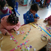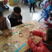 孩子们认真设计自己的花串