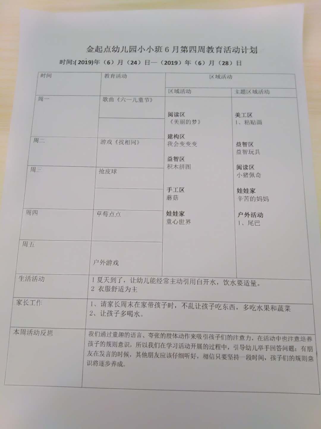 6月份周计划