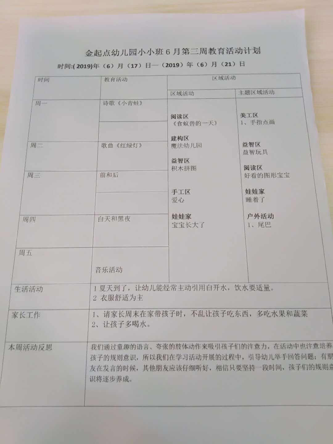 6月份周计划