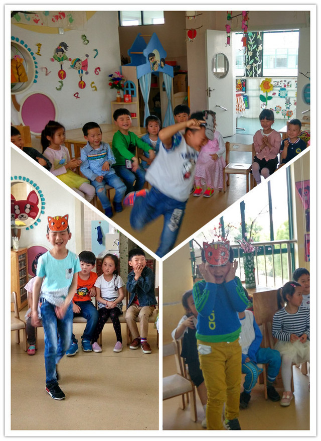 游戏背景:上学期,我和孩子们一起分享了“传帽”的音乐小游戏。大家围坐在一个大圆圈上,宽松的游戏氛围,动感节奏的音乐,把孩子们一下就吸引到游戏中去了。游戏原来的玩法是在音乐间奏处,帽子传到谁的手里谁就起来即兴跳上一段。虽然孩子们并不怯场,可是每次起来的孩子几乎都胡乱的蹦蹦跳跳,反而没有很好的利用到帽子。今天再玩这个游戏时,我发现有个孩子随意的跳起了骑马舞。这个动作让我想到如果将帽子换成动物的图片,传到谁的手里谁就表演这个动物不是更容易有趣吗?于是我找来几个动物头饰,开始观察孩子们的游戏表现。 游戏目标:1、遵守游戏规则,乐意表演出图片中动物的动作。 2、能与同伴合作游戏,感受游戏的快乐。 准备:将椅子摆成圆形、音乐、动物头饰或图片。 游戏玩法:孩子们围坐在一个圆圈上,双腿并拢,音乐响时,第一拍大家同时拍自己的腿,第二拍同时拍自己右边小朋友的腿。在拍腿的同时将动物头饰进行传递,当在音乐的间奏处,头饰传到谁的手里,谁就起来戴上头饰并跳头饰上小动物的动作。游戏依次进行。 游戏反思:本来这个音乐小游戏孩子们就很喜欢,动感的音乐节奏也很容易让孩子们兴奋。但在表演的环节时,由于有的孩子不知道自己跳什么,所以游戏过程存在缺陷。此次将帽子替换成小动物的头饰,更加贴近孩子喜欢动物的天性,表演起它们的动作就轻松很多。但头饰戴起来不太方便,所以有几次错过了表演,时间浪费在戴头饰上了,下次可以想一个方便孩子佩戴的方法再来玩游戏。
