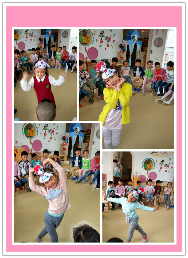 活动生成背景:上学期,我和孩子们一起分享了“传帽”的音乐小游戏。大家围坐在一个大圆圈上,宽松的游戏氛围,动感节奏的音乐,把孩子们一下就吸引到游戏中去了。游戏原来的玩法是在音乐间奏处,帽子传到谁的手里谁就起来即兴跳上一段。虽然孩子们并不怯场,可是每次起来的孩子几乎都胡乱的蹦蹦跳跳,反而没有很好的利用到帽子。今天再玩这个游戏时,我发现有个孩子随意的跳起了骑马舞。这个动作让我想到如果将帽子换成动物的图片,传到谁的手里谁就表演这个动物不是更容易有趣吗?于是我找来几个动物头饰,开始观察孩子们的游戏表现。 活动目标:1、遵守游戏规则,乐意表演出图片中动物的动作。 2、能与同伴合作及配合游戏,感受集体游戏的快乐。 活动重难点:能在音乐的间奏出戴上动物头饰,大胆演出相匹配动物的动作。 活动准备:将椅子摆成圆形、音乐、动物头饰或图片。 活动过程: 一、放音乐,幼儿用身体动作感受音乐的旋律,节奏。 师:这个音乐我们已经玩过一个有趣的游戏,你们还记得吗?今天我们再来玩一次。 小结:大家传帽的游戏已经玩得很好了,就是跳舞的动作少了一点。 师:你们最喜欢表演谁的动作和舞蹈呢? 幼:小动物 师:今天我带来几个小动物的头饰,我们一起看看有谁? 二、出示动物头饰,让幼儿熟悉动物 1、师:我们一起来学学这几个小动物的动作 2、放音乐,尝试用戴的小动物的动作来表演舞蹈 3、幼儿尝试游戏做动作 1、听音乐练习拍腿节奏 2、将小动物头饰放在任一小朋友处,音乐开始游戏传递 3、在音乐间奏处,接到动物头饰的小朋友将头饰戴在头上,表演该动物的动作或舞蹈 四、完整的进行几次游戏 1、幼儿玩游戏 2、老师加入玩游戏 3、邀请老师玩传帽游戏。 活动反思:本来这个音乐小游戏是传帽的游戏,孩子们就很喜欢,动感的音乐节奏也很容易让孩子们兴奋。但在表演的环节时,由于有的孩子拿到帽子以后不知道自己跳什么,所以游戏过程存在缺陷。孩子们对小动物都很熟悉,即使动作不丰富,但小动物的动作还是可以模仿的。所以此次将帽子替换成小动物的头饰,更加贴近孩子喜欢动物的天性,表演起它们的动作就轻松很多。但在音乐间奏处,孩子不仅要戴头饰还要想动作,而且头饰戴起来很不太方便,所以好几次音乐到了还没有戴好头饰,而错过了表演。所以如果可以想一个方便孩子佩戴的动物帽子肯定就方便多了。 |