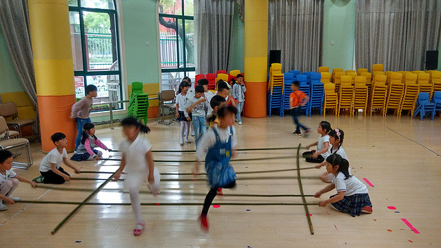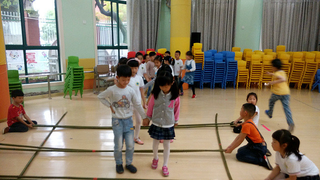 3、美工区:折纸  4、建构区:快乐拼搭  室外游戏: 5、竹竿游戏  6、跳皮筋  在此次的分享游戏中,孩子们不仅收获了不同游戏的快乐,更加深了与同年级小朋友之间的友谊。
