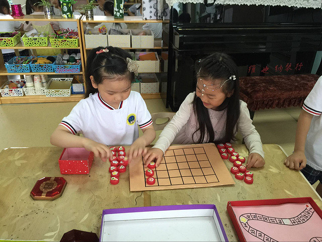 “六一”的歌声还在耳边回荡,“六一”的笑脸还在眼前闪现。今天,我们又带着“六一”的快乐心情,进行了一次别开生面的、动静结合的共享游戏活动。不仅给六一的孩子带去了欢声笑语,也为五月的区域游戏划上了圆满的句号。 室内游戏分享: 1、树枝游戏  2、棋类游戏