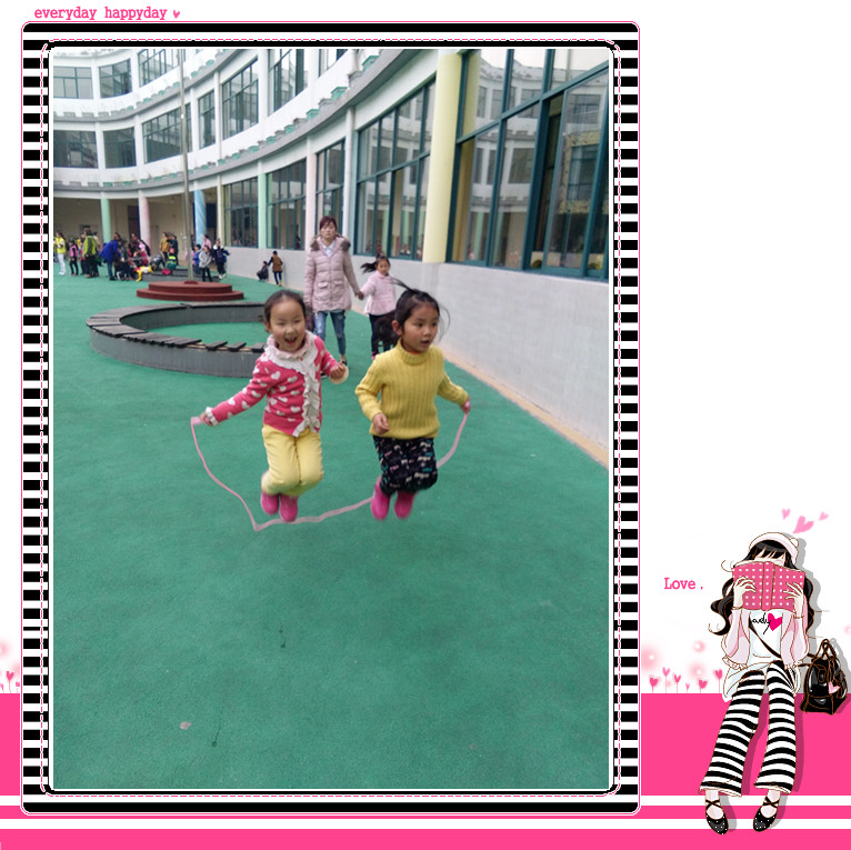 生成背景 在一次晨间活动时孩子们大部分都在玩跳绳,只见桂稼萱跑来对我说:“老师,快看”顺着桂稼萱小手指的方向一瞧,让我兴奋不已,兴奋得是:李沁彤和朱清晨小朋友两人合作跳一根绳,而且两人配合的非常默契。我高兴地拍着手说“小朋友快去找个好伙伴大家一起比比谁跳得花样多”。很快小朋友都找到了自己的合作伙伴。在随后的活动中我发现:曾志鑫甩绳,高星辰有节奏得跳上跳下;张一诺和王晨曦甩绳,金武、强珂、计彤他们在一会儿跳进,一会儿跳出……。就这样生成了本次健康课《花样跳绳》。 活动目标 体验民间游戏带来的快乐。 活动重难点 学习两人和多人合作花样跳绳。 活动准备 绳子每人一根,大绳一根,欢快音乐,活动场地。 活动过程 一.开始部分:自由跳绳 随音乐小朋友四散在活动场地上自由跳小绳。 二.学习部分 1.学习两人花样跳绳 (1)哇塞,小朋友跳得太棒了,你们敢不敢挑战两人合作花样跳绳?(敢) (2)请两位小朋友各牵跳绳的一端,自然拉开,两人同时喊:“一、二、三,”左边小朋友左脚脖跳进绳子连续跳,跳会后则换右边小朋友右脚脖跳进绳子,两人互换动作反复练习。 (3)小朋友两两合作练习花样跳绳,鼓励幼儿跳出和别人不一样的跳法。 (4)师不停地观察,发现认真练习的小朋友及时给与表扬并展示动作。 2.学习多人花样跳绳 (1)小朋友学会了两人跳绳,现在我们增加难度,挑战多人花样跳绳,你们有信心吗?(有)。 (2)请两位小朋友各牵大绳的一端,然后拉开,两人同时喊:“一、二、三,”一个小朋友跳进,连续跳三个就跳出大绳,其余小朋友依次接力跳大绳。 (3)自由练习 挑战自我;请跳得好的小朋友在大绳里面跳小绳或串花跳。 三.结束部分 1自由组合随音乐花样跳绳。 2整理好物品回活动室。 活动收获 孩子们最爱听的是鼓励的话,最爱玩的是游戏,一句鼓励的话激发了孩子们的竞争意识,那些不甘落后的小家伙们,把看到的、想到的大胆探索,不断地练习,才有了今天生成课《花样跳绳》的精彩瞬间。