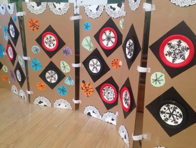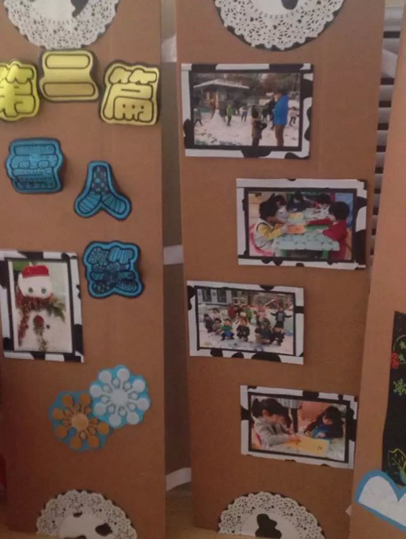 | 今年的第一场雪,敲开了冬天的大门,同时也敲开了小朋友对冬天的认识。提起冬天,大多数人的感受是寒冷,刺骨的风,一望无边的茫茫白雪,但对于孩们来说就有所不同了。我们一起玩雪、堆雪人、打雪仗、画雪、画圣诞树...这些活动让孩子们乐此不疲。在与幼儿积极、热烈的讨论中,我们将快乐感受融入了冬的主题绘画中,开展了以“冬之舞”为主题的画展,画展分三个部分“雪花飘”、“雪人乐”、“节日到”。以我班的班级“线描画"为特色的展现形式,分别在盘中画雪花、在刮画中、彩纸上画雪人、在黑卡纸上画圣诞树.....一张张美丽的画面都体现着无比的童心和对冬的诠释。 通过画展不仅满足幼儿好奇心、对新鲜事物渴望探索的同时,丰富幼儿各方面的知识。通过观察、体验、记录等多种形式发现了许多冬天的秘密。冬天给孩子们带来的不仅是寒冷,更多的是快乐和喜悦。