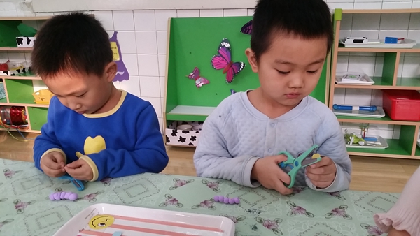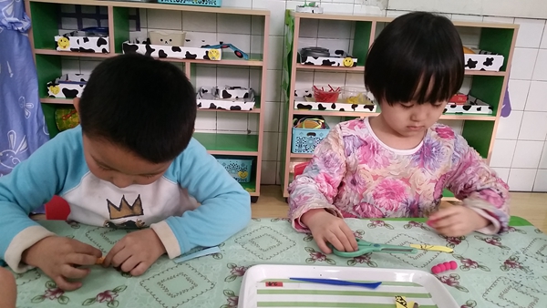 泥工作为幼儿美术教学中一个重要组成部分,深受幼儿喜爱。通过泥工教学活动,不仅能使幼儿掌握一些简单的塑造物体形象的方法和技能,并能增强幼儿手的协调性、灵活性,促进其智力的发展。本学期以来我们在美术活动中设计了系列泥工活动,孩子们初步掌握了捏、团、搓、压等技能,在此基础上我还结合孩子爱动物的特点精心设计了此次活动。除了制作活灵活现的毛毛虫,孩子们还用小剪刀帮毛毛虫剪出身上的毛,让毛毛虫变得更形象更可爱。