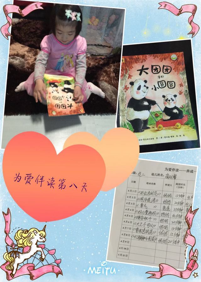 4月2日是国际儿童图书日,4月23日是世界读书日,书是五彩生活的万花筒,书是大千世界的缩影。从小培养孩子对阅读的兴趣,让孩子爱读书,勤读书,乐读书,培养良好的阅读习惯,对孩子一生的发展都至关重要,而亲子阅读更是培养这一好习惯的重要途径。为了增进家庭成员的情感交流,我园将4月定为“读书月”,从1号开始,我园“为爱伴读”四月读书月活动就正式启动了。 到今天我园开展的“为爱伴读”读书月活动进行有一周的时间了,非常感谢家长和小朋友们的坚持,在这10天的时间里,小朋友们每天读一本书,相信孩子们和家长都有许多的感触,馨馨妈妈就说:通过为爱伴读活动,让我深刻的感受到读书对孩子成长的重要性,由刚开始的我读她听到现在的亲子共读,伴读不仅让孩子在阅读的过程中体会到阅读的乐趣,而且还提高了孩子的专注性。丫丫的妈妈也同样感慨道:通过每天的亲子阅读,从开始的习惯变成现在的一种爱好,从绘本惟妙惟肖的图画中探索奥秘,我也和孩子一起成长一起领悟阅读的快乐!班上的小朋友们都说每天最开心的事就是晚上的看书时间,最喜欢妈妈陪着自己看书了。 是啊,书是我们最好的朋友,阅读不但能让小朋友们拥有幸福的童年,还能让我们每个人终身受益。播种行为,收获习惯;播种习惯,收获命运。21天养成一个受益终身的好习惯,在接下来剩下的11天时间里,我由衷地希望家长和孩子继续坚持下去,让我们大手拉小手,一起走进书香满溢的世界。