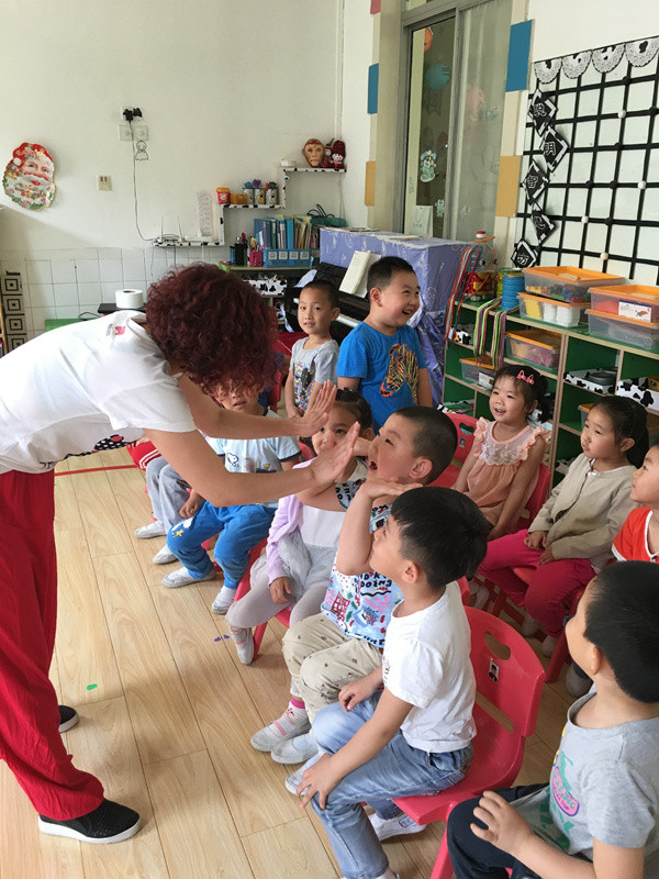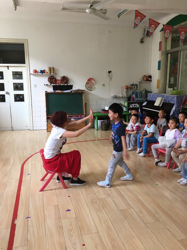 语言表演是以普通话正音为基础,以发声训练、气息练习为辅,以训练儿童大胆上台、敢于表现为目的,根据儿童的生理特点及认知特点,以发音练习、绕口令、儿歌、故事表演、诵说曲艺、学国学、习礼仪、诗歌朗诵、活动主持、趣味演讲、少儿播音、现场脱口秀等练习形式来综合提高学生组织语言、表达语言能力的教材,并借此培养学生积极健康、乐学向上的良好学习习惯。为了让我们的孩子都能有良好的表达和表现能力,我园特别聘请了专业的语言表演教师——叶子老师,每周都给来小朋友们带来精彩的语言表演活动。 本周三上午9点45分,我们非常开心的迎来了这位叶子老师,一开场叶子老师就给小朋友们留下了深刻的印象,她全身都洋溢着激情与欢乐,这种氛围感染着每一个孩子,一个个小小的游戏就让孩子们锻炼了语言表演的基本功——腿部、胸部、眼睛、表情、口齿等等各个方面,我们还学了一首非常有趣的《颠倒话》,孩子们不知不觉的就表演了出来,活动结束时,孩子们有的都出汗了,可见叶子老师的一言一语是多么生动有趣,吸引着孩子们去模仿去学习。 神奇的语言教育能赋予孩子主持人般的谈吐,明星般的气质,不凡的交际能力及卓越的领导才能。壮胆量、练自信、训口才、养气质、提作文、敏思维。让我们的孩子都能变得自信聪明,能说会讲,出类拔萃,神采飞扬!