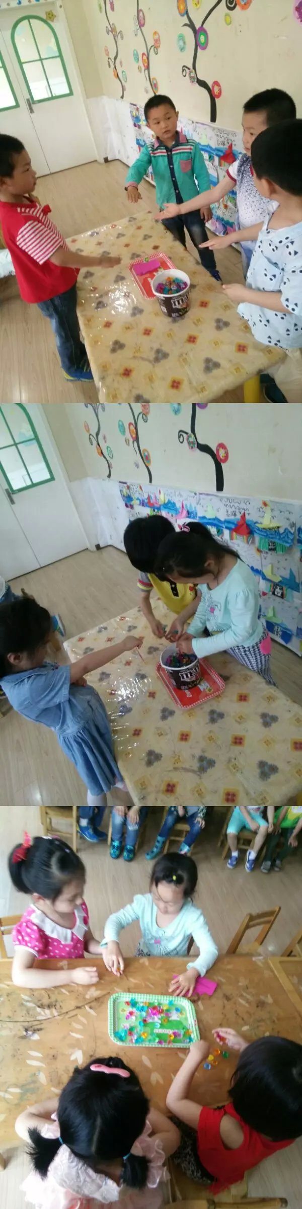 参与游戏人数3到6人,第一步运用手心手背确定一名幼儿为裁判;第二步裁判抽取数字卡片;第三参与游戏幼儿快速拿取卡片中相应的彩石。裁判来检验数字是否正确。(以正确又快速的幼儿为胜利。)胜利者可以当裁判,游戏继续。