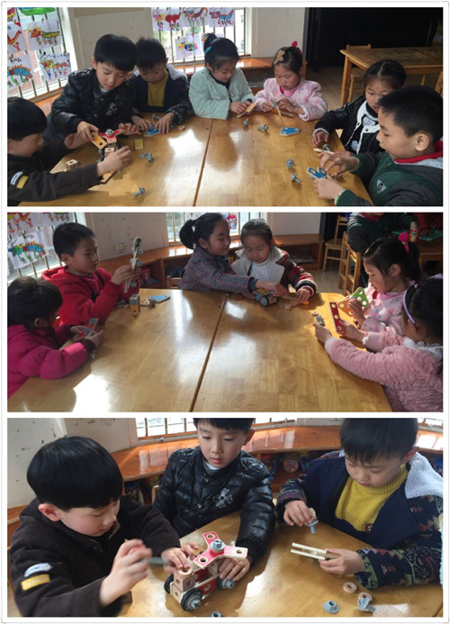 这个百变木匠工具盒是幼儿园新添置的幼儿益智玩具,采用环保水性漆和俄罗斯进口优质夹板制成,除工具盒外,内含扳手、螺丝刀及各式齿轮、螺丝等配套工具,可模仿现实进行工具操作,培养幼儿的动手能力,我们班的幼儿非常喜欢。他们发挥自己的想象力创造力拼搭出一个又一个有趣的物体形象。