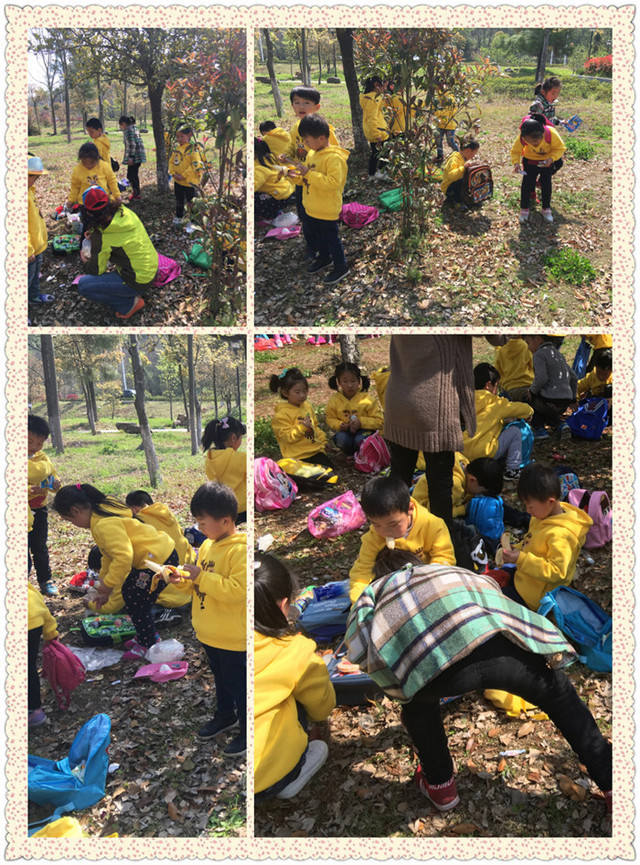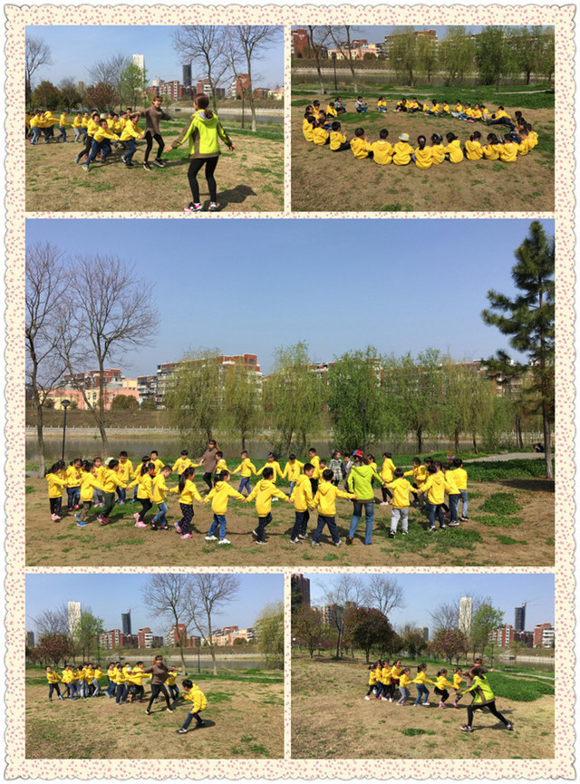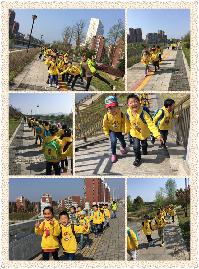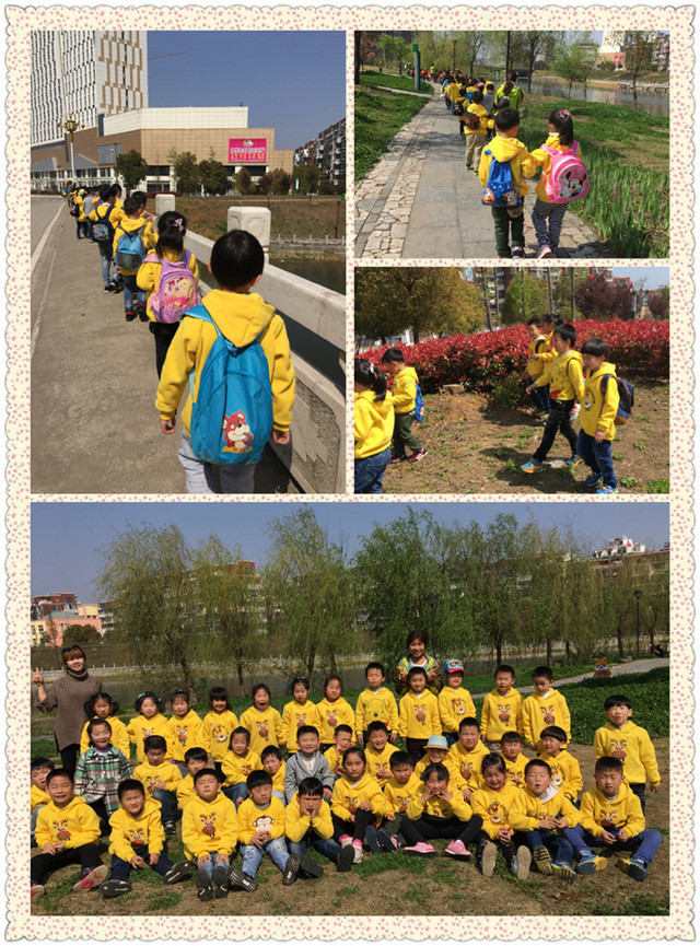 春回大地、阳光明媚、百花齐放、鸟语花香,正是孩子们踏青、游玩、领略大自然美好风光的最佳季节。 周四早晨,沐浴着温暖的春光,全体小朋友和“大朋友”们沿着美丽的河畔、迈着轻快的步伐、哼唱着愉快的儿歌一起来到了风景秀丽的春早公园踏青游玩。一路上充满了欢声笑语,短短的时间就到了我们的目的地,一到公园便立刻感受到了浓浓的春天气息。“老师,快看,好多花都开了啊!绿绿的草地真漂亮····”一边走孩子们一边发出感叹,寻找春天的景象。随后我们组织多种游戏,有老鹰捉小鸡、木头人、吹泡泡等,孩子们像一群放飞的小鸟,自由的遨游,非常的开心、快乐。最后,是休息的时刻,大家找到一块比较平坦的草地上坐下了,边交谈边将自己事先准备好的零食拿出来补充能量,有的还将自己好吃的分享给大家,画面可爱而又温馨。快乐的时间总是短暂的,午餐时间快到了,孩子们整理着自己的物品,将不小心掉落在地上的垃圾捡起来装进备好的垃圾袋中,在一片欢笑中离开了。 这次春游活动,不仅拉近了孩子们与大自然的距离,开拓视野,汲取知识,感知人与自然的和谐与美,还增进了孩子与孩子间、孩子于老师之间的情感,培养了爱护环境,保护环境的意识。 出发了!